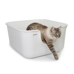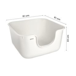 Esta caixa de areia aberta e espaçosa é confortável para todos os gatos. Tem a particularidade de ter as paredes altas e, por isso, evita que a areia saia do seu interior.