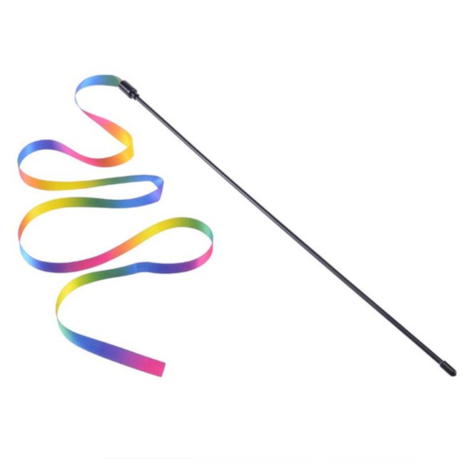 Esta cana de plástico possuí na sua extremidade uma fita arco-irís.