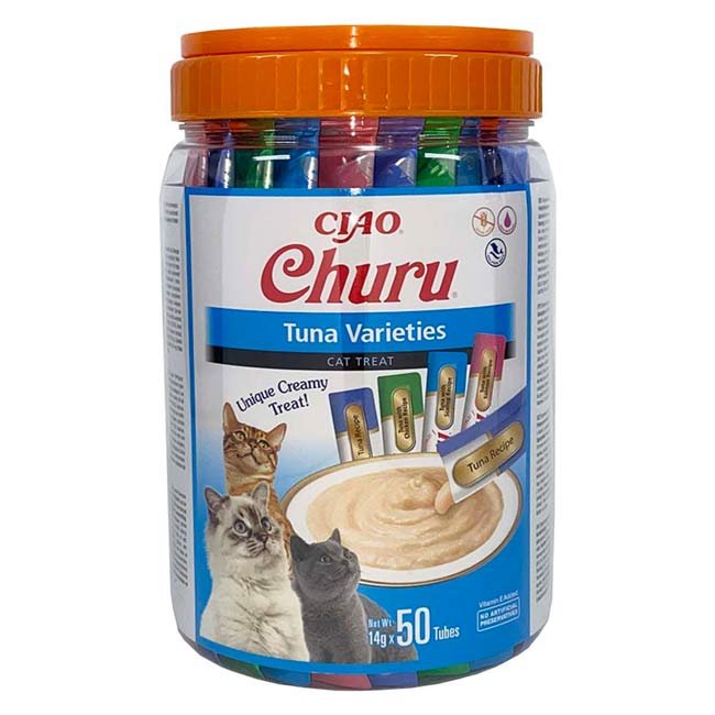 O pack com 50 tubos de Churu variedades de Atum é ideal para os amantes destes irresistíveis snacks líquidos para gatos. Com uma textura suave e cremosa, é a opção perfeita para garantir a felicidade e bem-estar do seu gato diariamente.