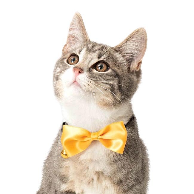 Esta coleira com laço amarelo da Catit é um acessório indispensável para receber visitas lá em casa.