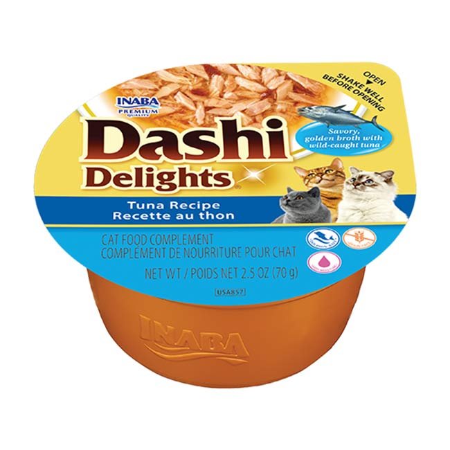 Dashi Delights de Atum é um alimento húmido complementar com pedaços tenros de atum mergulhados num caldo leve e saboroso. Uma opção deliciosa e nutritiva para mimar o seu gato enquanto contribui para a sua hidratação diária.
