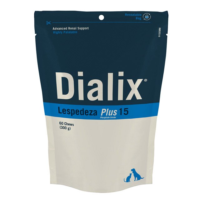 O Dialix Lespedeza-Plus-15 é um suplemento alimentar para gatos e cães, formulado em chews de alta palatabilidade, rico em Flavonóides, que auxiliam na manutenção da função renal, e Carbonato de Cálcio, que atua como quelante de fosfato.