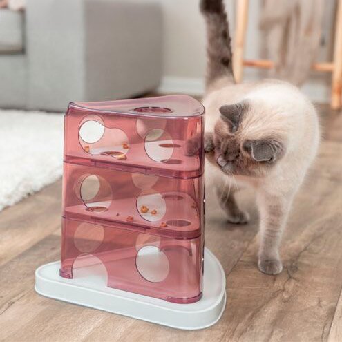 O Jogo de inteligência CHEESE TOWER da Trixie é um brinquedo interativo ideal para estimular a mente do seu gato, desafiando-o de forma divertida enquanto procura o seu alimento.