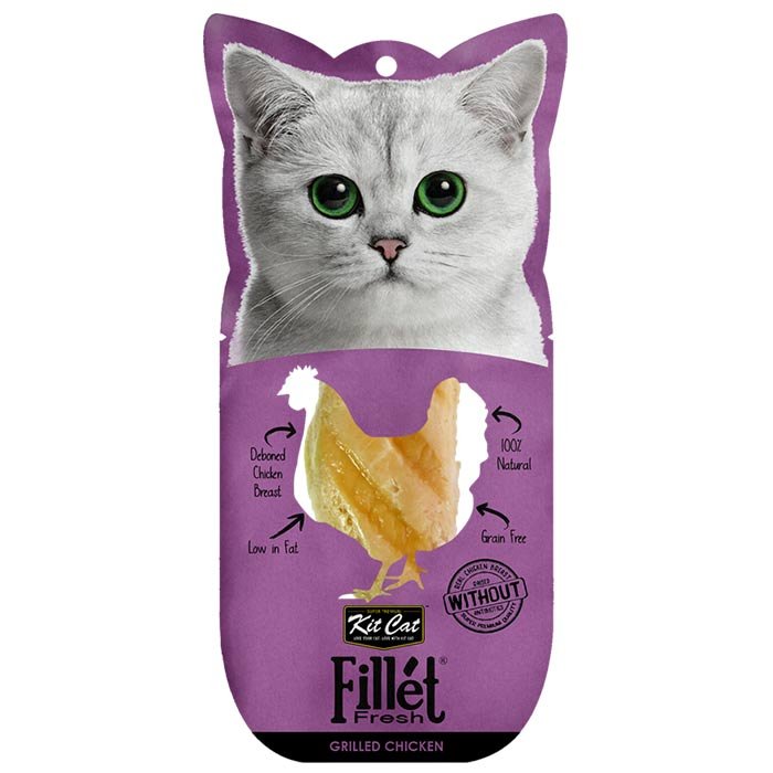Kit Cat Fillet Fresh Grilled Chicken é um requintado filete fresco de frango tenro e desossado, que é cozinhado na grelha para que o seu gato desfrute de cada dentada e se sinta um autêntico felino selvagem.