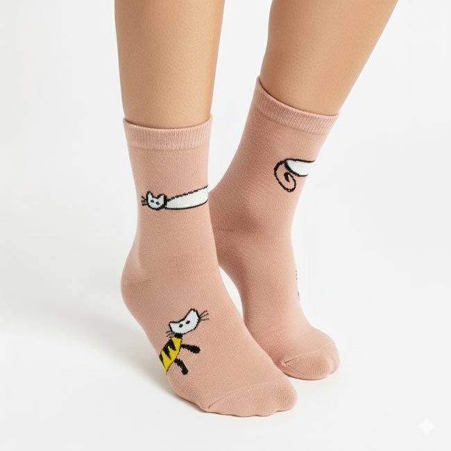 Estas meias com desenhos de gatos são o acessório perfeito para quem adora felinos e quer levar a fofura dos gatinhos para o seu dia a dia.