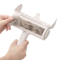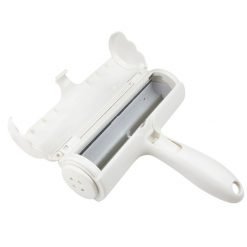 Este rolo consegue agarrar pelos e outras sujidades de tapetes, sofás e outros têxteis.