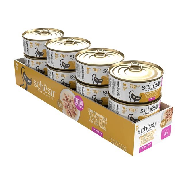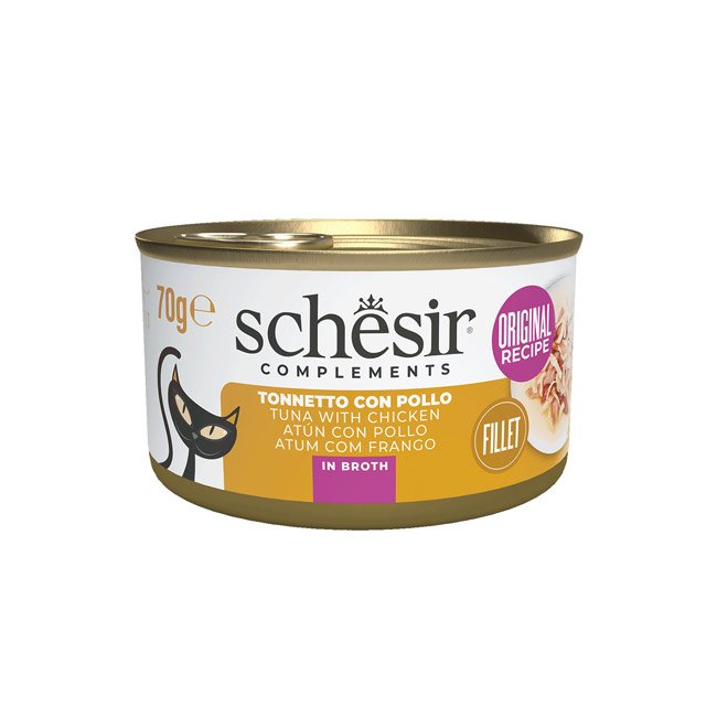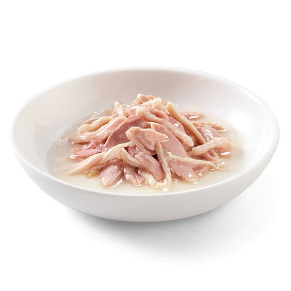 A receita é baseada em autênticos filetes de atum combinados com apetitosos filetes de frango. Apresenta-se no próprio líquido de cozimento para os gatos que apreciam o sabor natural e uma consistência mais fluída.