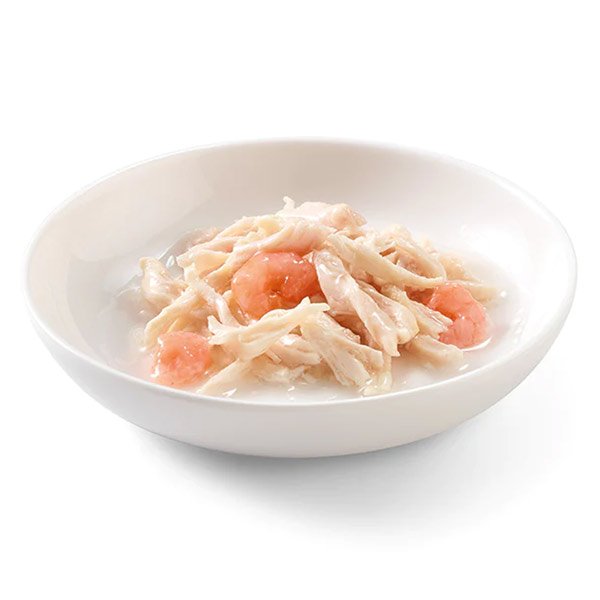 A receita é baseada em autênticos filetes de frango combinados com camarões, um sabor delicioso extremamente apelativo. Apresenta-se no próprio líquido de cozimento para os gatos que apreciam o sabor natural e uma consistência mais fluída.
