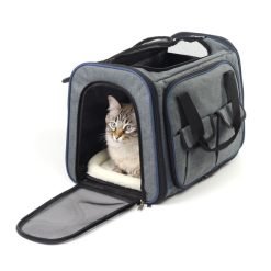 - Dupla entrada: na lateral e em cima – permitem um acesso mais fácil para colocar o animal dentro.