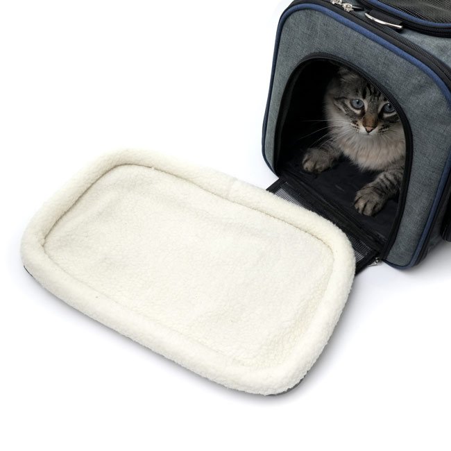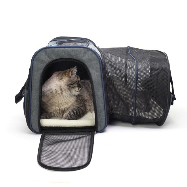 - Quando expandida, proporciona espaço adicional para o seu felino se mover, esticar e acomodar-se confortavelmente durante a viagem.