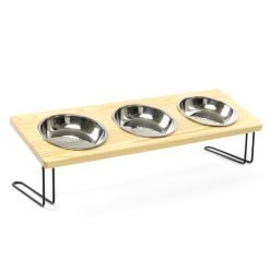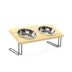 O Vinson é um comedouro para gatos em madeira que, graças à sua altura, inclinação e às taças pouco fundas oferece um maior conforto durante as refeições.